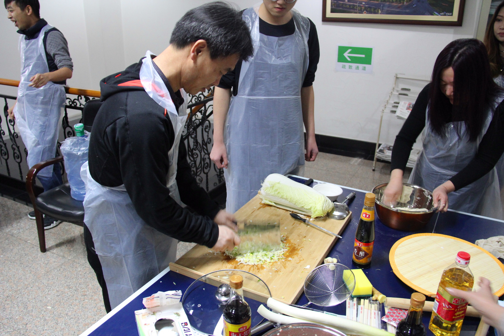 設(shè)計所工會在2月9日一早就為大家準(zhǔn)備好了包餃子的材料和用具。9點整,活動正式開始。比賽隨機抽簽分為四,大家各自分工,洗菜、拌餡,一起動手,一邊包餃子一邊交流著不同地方的新年習(xí)俗。