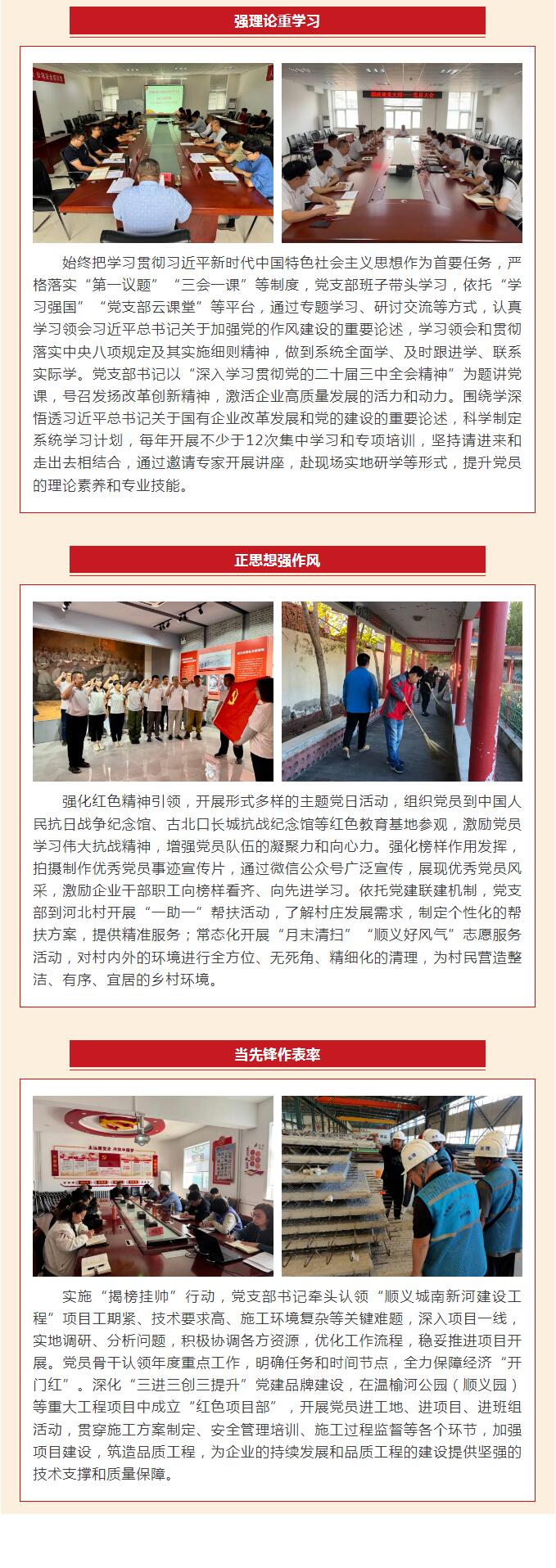 北京順政通工程監理有限公司黨支部注重發揮戰斗堡壘作用和黨員先鋒模范作用,引領帶動企業職工爭先創優、敢爭一流,聚力賦能企業高質量發展。