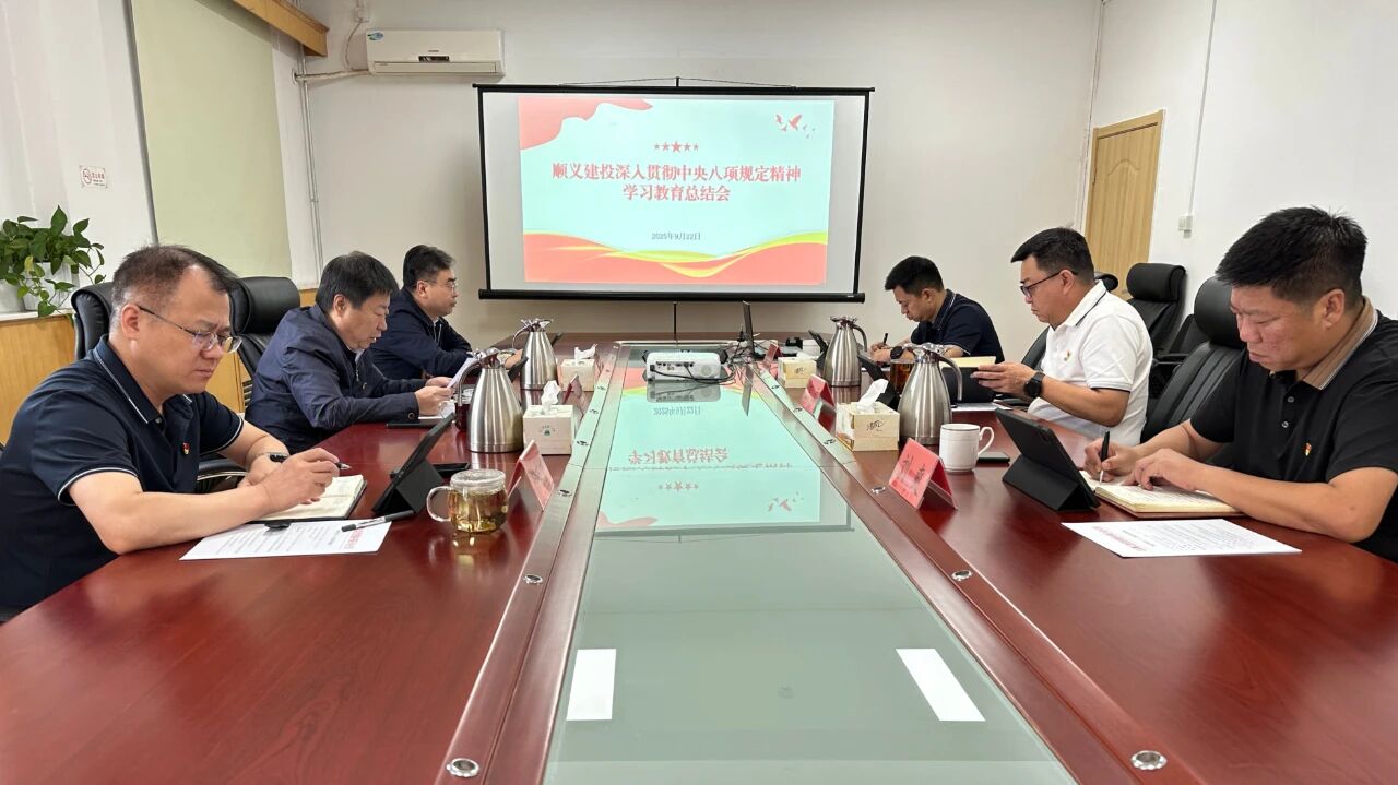 2025年9月22日,順義建投召開黨委會議,集中學習習近平總書記重要指示、中央以及市區層面學習教育總結會議精神,全面總結全公司深入貫徹中央八項規定精神學習教育開展情況,研究部署鞏固拓展學習教育成果,鍥而不舍落實中央八項規定精神,推進作風建設常態化長效化工作。公司黨委書記、董事長宋學農同志主持會議并作總結講話。