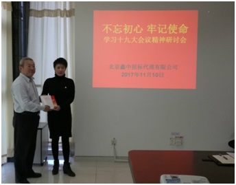 工會主席岳陽赴北京鑫新國際拍賣有限公司黨支部宣講十九大精神。