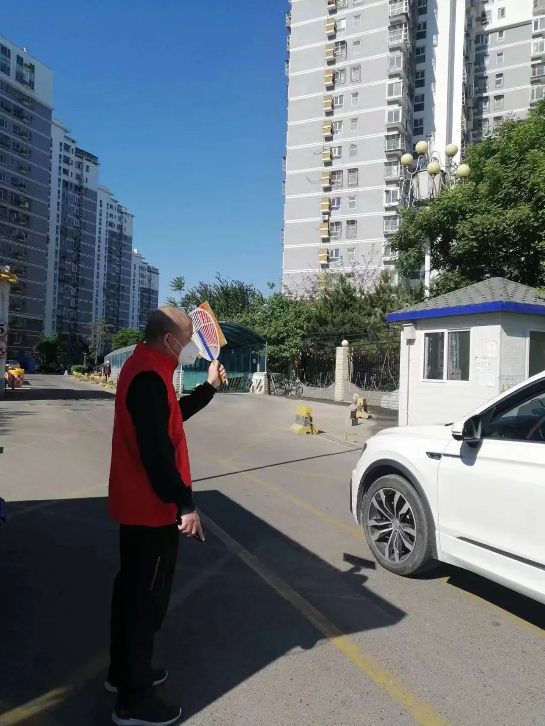 順義建投黨委副書記胡代安帶頭響應,下沉社區,按照社區安排,在社區門口負責人員掃碼登記工作。