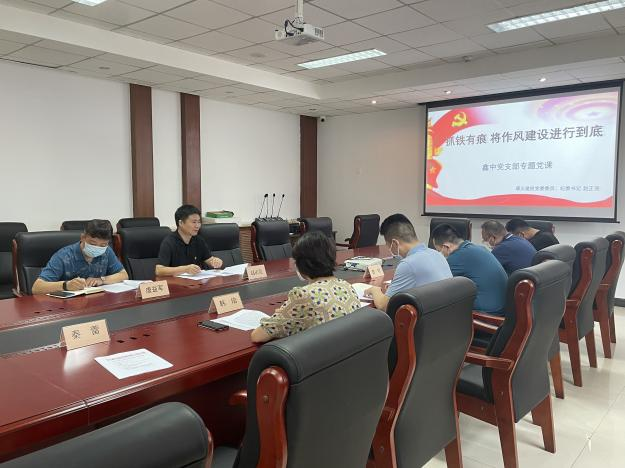 為慶祝中國(guó)共產(chǎn)黨成立101周年,進(jìn)一步推進(jìn)黨員干部思想作風(fēng)建設(shè),7月27日上午,順義建投黨委委員、紀(jì)委書記趙正亮深入鑫中黨支部,以《抓鐵有痕 將作風(fēng)建設(shè)進(jìn)行到底》為題,為全體黨員宣講專題黨課。會(huì)議由鑫中黨支部書記趙凱主持,全體黨員參加。
